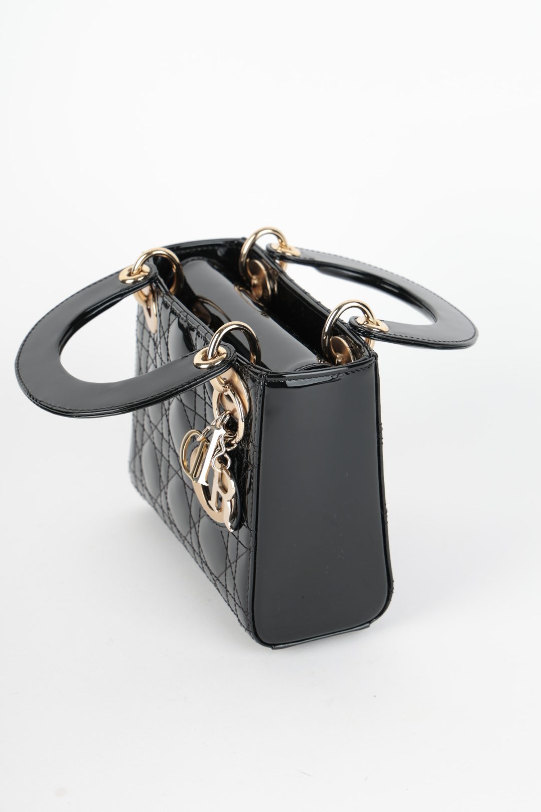 Sac en cuir vernis noir avec bandouliere en cuir