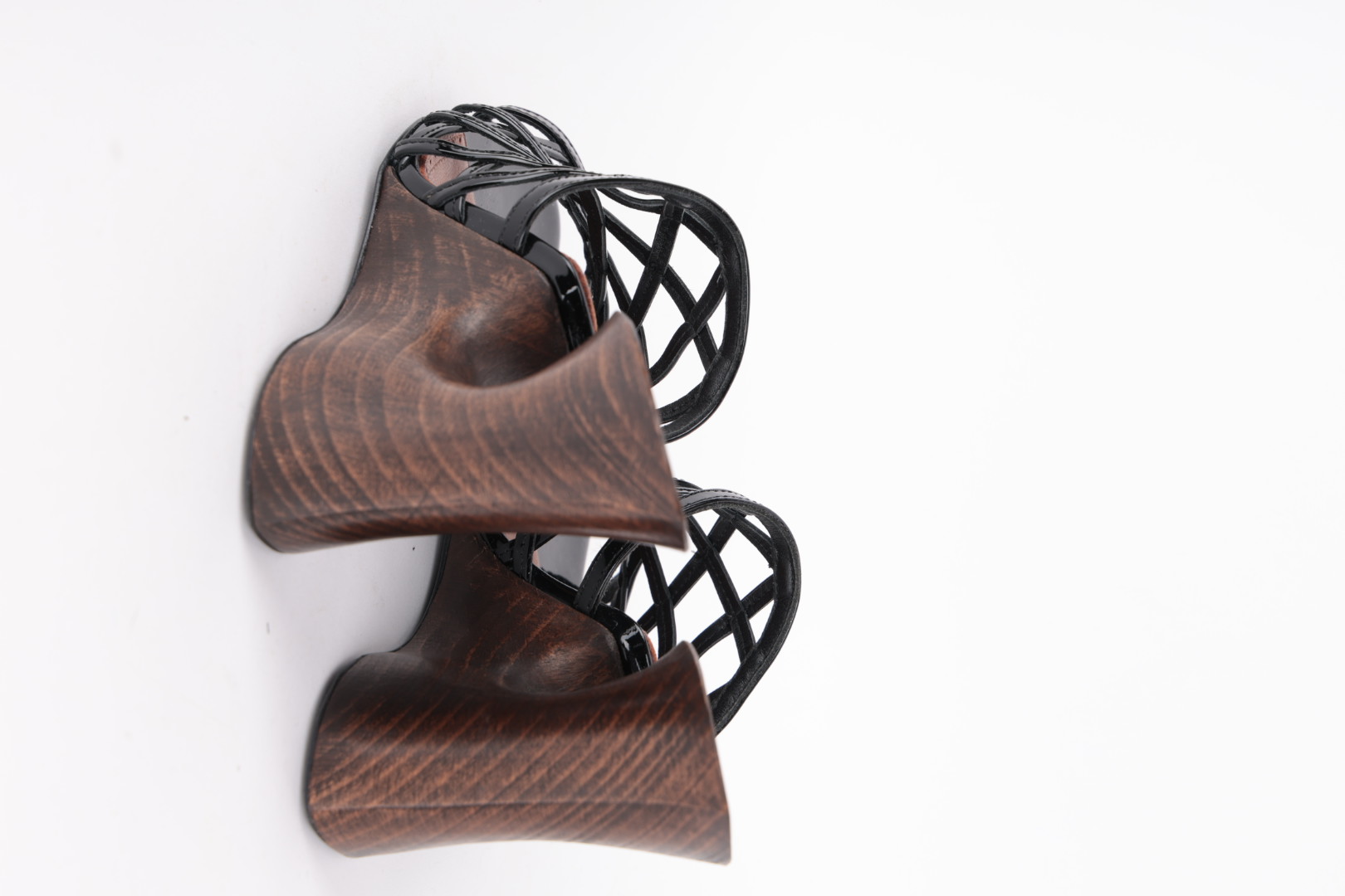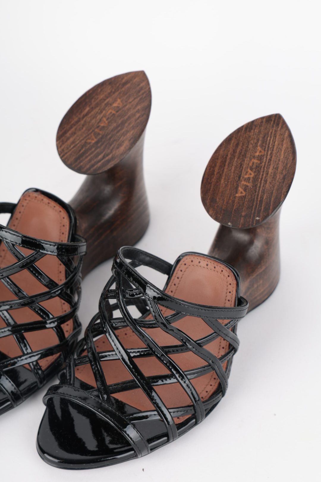 Mules à talons en bois et cuir vernis